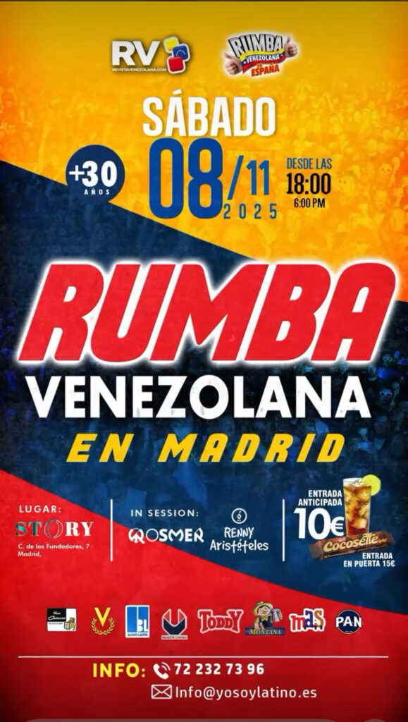 La comunidad venezolana en Madrid sigue creciendo, y cada fiesta se convierte en un reencuentro entre panas, risas y buena vibra. Es el punto de encuentro perfecto para hacer nuevos amigos latinos, disfrutar del ambiente caribeño y sentirte, por unas horas, como en Caracas, Maracaibo o Valencia.